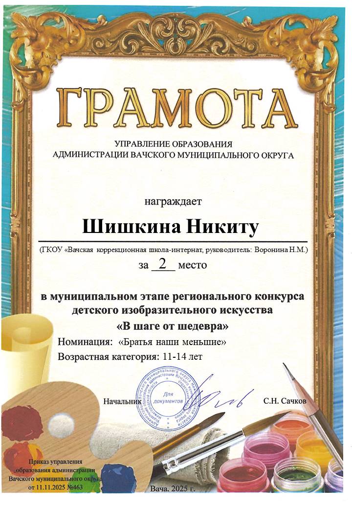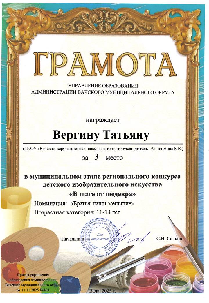 Грамоты за участие в муниципальном этапе регионального конкурса детского изобразительного искусства "В шаге от шедевра"